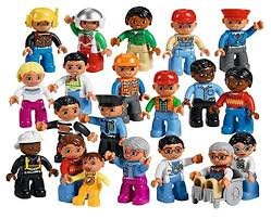 The set includes 20 unique DUPLO® figures representing real-world characters, such as professionals, family members, and individuals with diverse backgrounds and abilities.